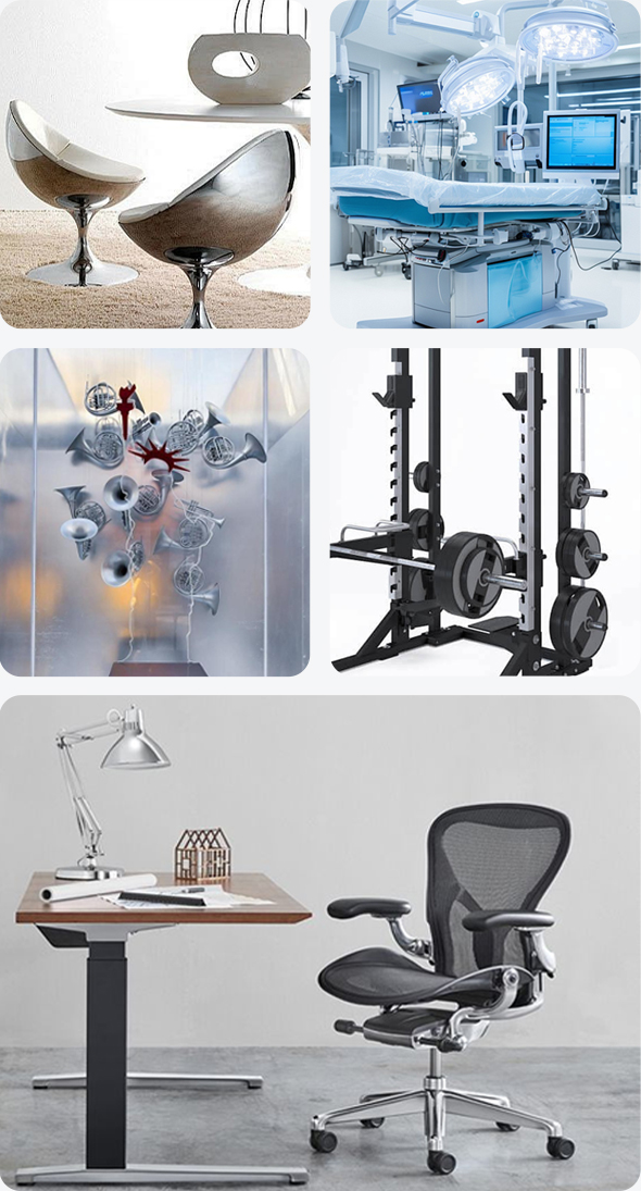 醫療機械、管道行業、護欄行業、辦公桌椅、健身器材