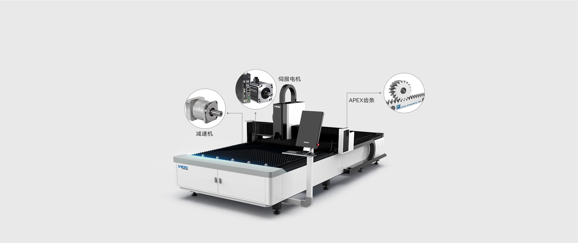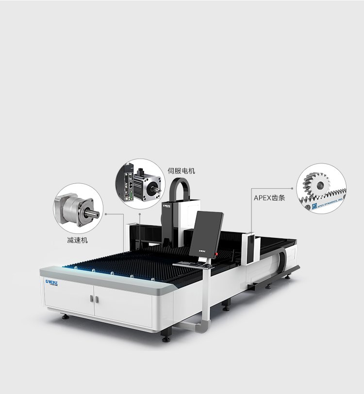 伺服電機(jī)、減速機(jī)、齒條等均采用大品牌,品質(zhì)高、機(jī)床作業(yè)精度高、使用壽命有保障