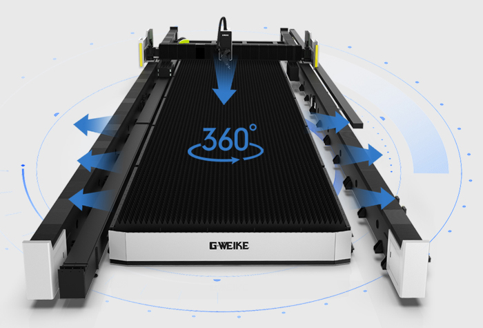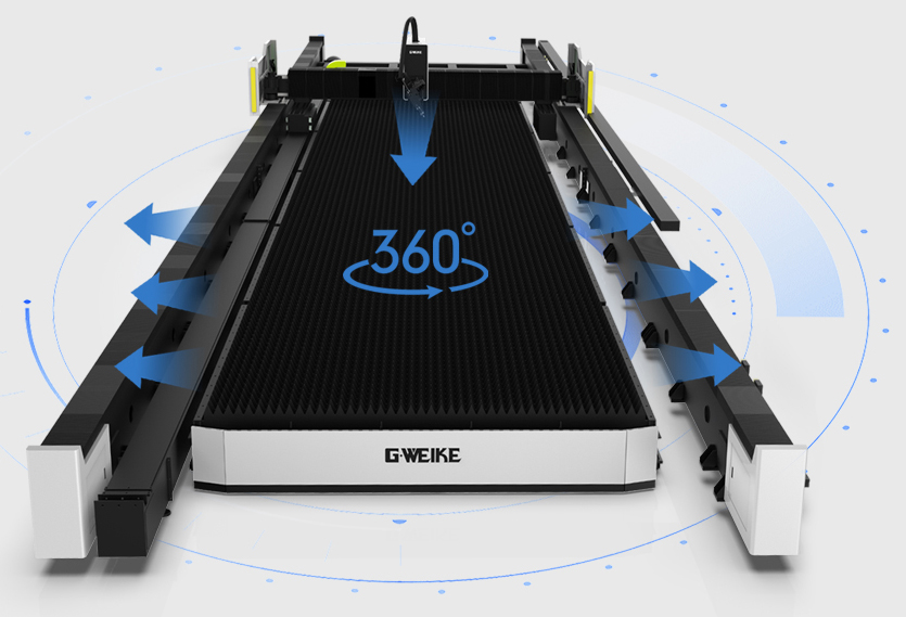 模塊化床身實現長度按需定制,床身與工作臺分體式設計,大截面矩形管材焊接、退火處理后精加工,穩定可靠便于運輸