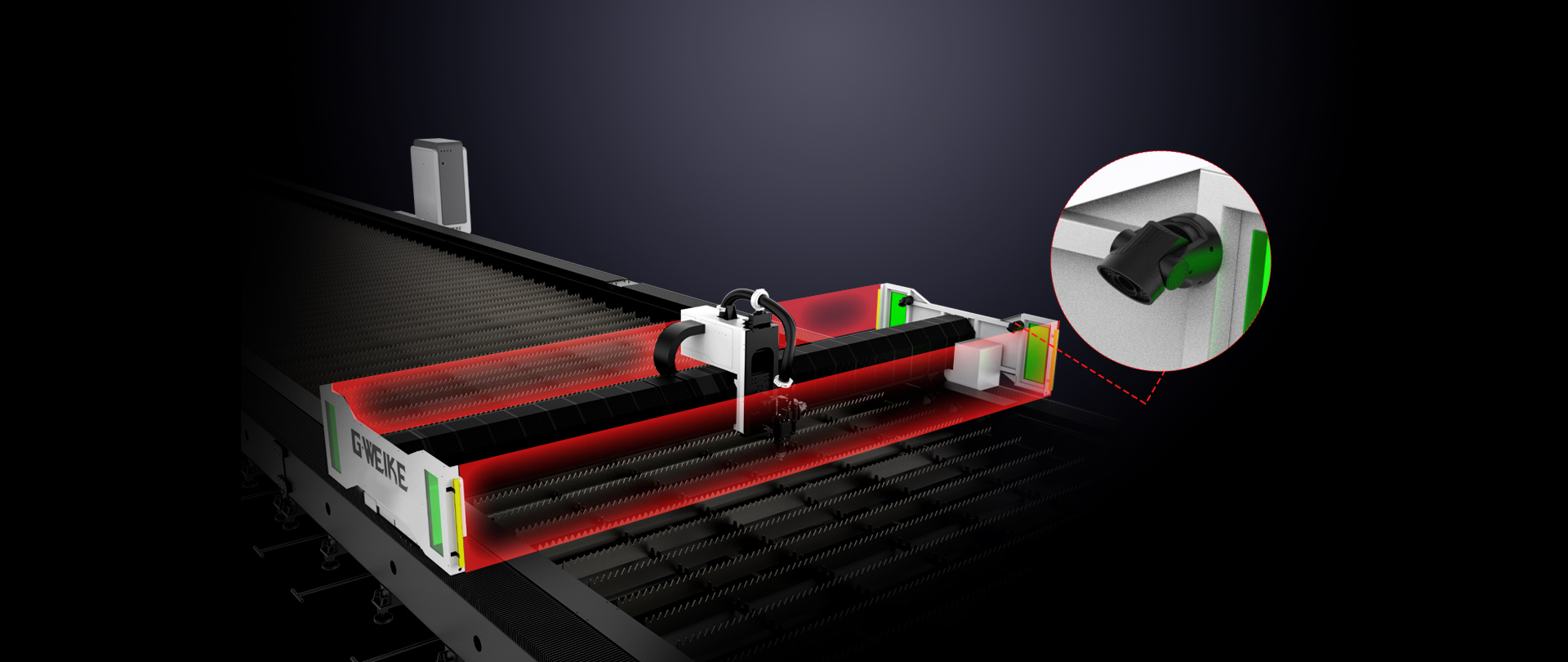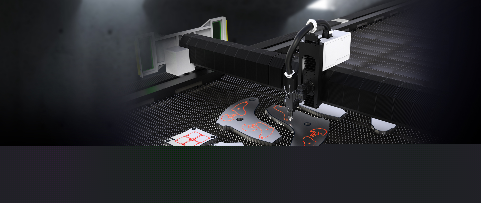 減少載重對床身的影響,延長使用壽命,拼接一體床身,保證設備長期高效高精切割