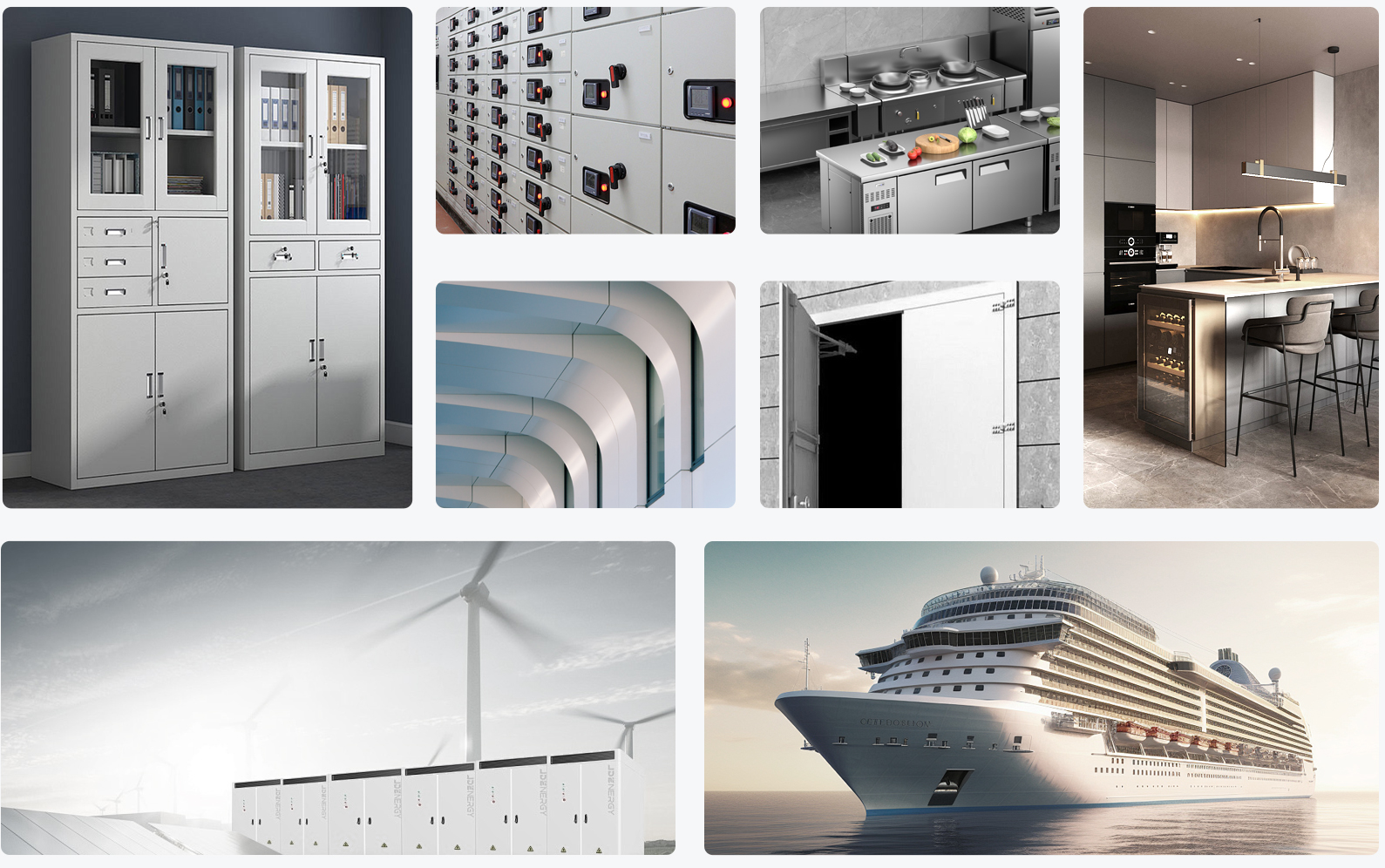 文件柜、電氣柜、廚具、天花幕墻、門業電梯、家電家具、風力通訊、船舶制造